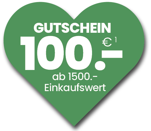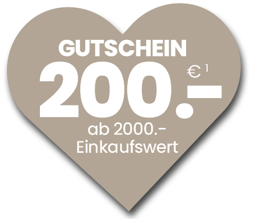 1) Nur gültig bis 31.01.2026. Gilt nicht für bereits reduzierte Sonderpreise, keine Auszahlung möglich, pro Möbel nur ein Gutschein einlösbar. Nur auf Neubestellungen und nicht auf laufende Kaufverträge anwendbar. *Alle Preise sind Abholpreise in € inkl. MwSt.; ohne Lieferung und Montage; ohne Deko. Preise und Produkte sind gültig bis 31.01.2026.