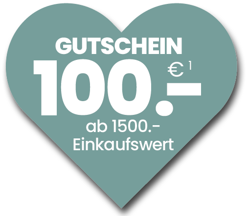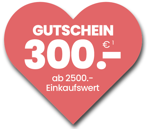 1) Nur gültig bis 31.01.2026. Gilt nicht für bereits reduzierte Sonderpreise, keine Auszahlung möglich, pro Möbel nur ein Gutschein einlösbar. Nur auf Neubestellungen und nicht auf laufende Kaufverträge anwendbar. *Alle Preise sind Abholpreise in € inkl. MwSt.; ohne Lieferung und Montage; ohne Deko. Preise und Produkte sind gültig bis 31.01.2026.